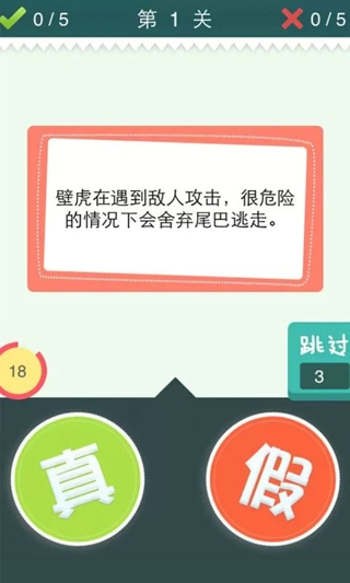 是真是假是一款運(yùn)行在安卓平臺上的益智休閑游戲,生活常識掃盲游戲,游戲類型大家應(yīng)該熟悉,就是Yes or No的形式來玩游戲。是真是假,你需要累積答對近1000道題才能通關(guān)