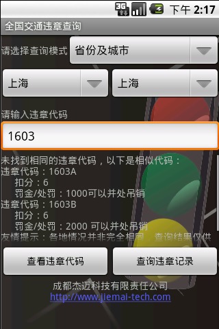 杰邁生活小助手之全國交通違章查詢安卓版,能快速在手機(jī)上查詢?nèi)珖秶鷥?nèi)的交通違章記錄及駕照扣分信息,方便有車一族隨時(shí)了解自己是否有過交通違章,避免因遺忘或逾期處理違章罰單而造成的不必要損失。