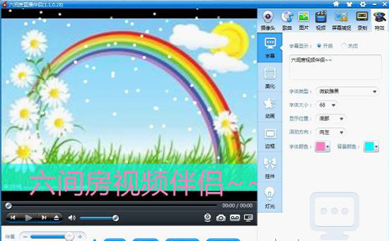 接下來,我們要著重介紹六間房視頻伴侶的視頻美化特效功能。首先是字幕顯示,用戶可以將自己想表達(dá)的話進(jìn)行字體、大小、位置以及滾動(dòng)方向、字體顏色、背景顏色的設(shè)置。