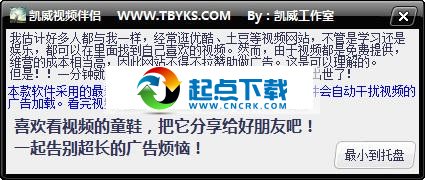 凱威視頻伴侶可以有效屏蔽優(yōu)酷、土豆等視頻廣告,軟件綠色小巧,使用方便,以前的屏蔽工具現(xiàn)在有黑屏現(xiàn)象,目前僅有本款可以有效去除廣告。