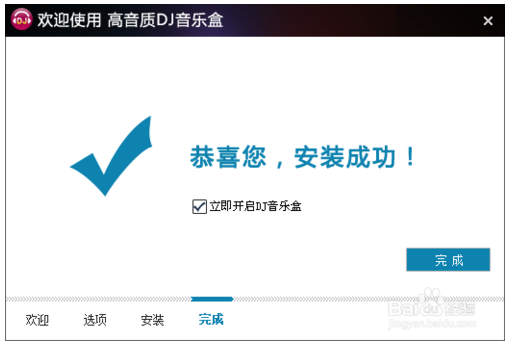 3、現(xiàn)在我們可以看到已經(jīng)安裝成功,有提示”恭喜您,安裝成功“我們直接點(diǎn)擊完成就可以。