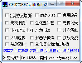 cf源吉REZ大師 beta2 全能版 cf源吉REZ大師全能版發(fā)布了,一鍵即可修改rez,提供熱門輔助功能,歡迎下載體驗。