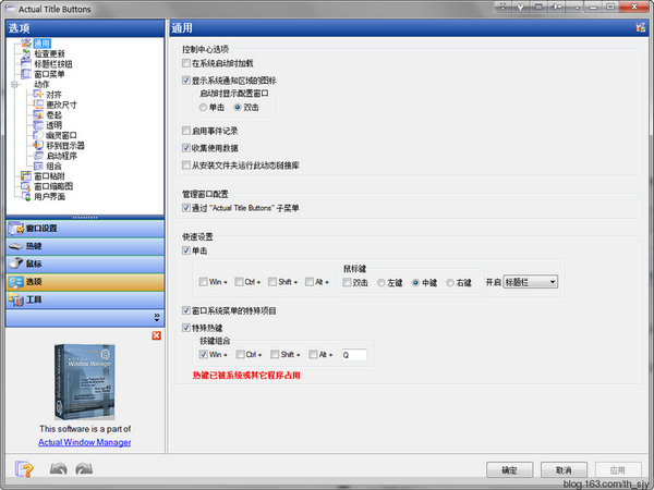 通過使用這一工具,你可以為普通窗口標(biāo)題欄增加“最小化至系統(tǒng)托盤”和“總在最上面”兩個特殊的按鈕(想必是受了Linux系統(tǒng)的啟發(fā))。大家如果對此類功能的程序感興趣,也可以試試下面這款同一公司的產(chǎn)品 Actual Window Manager