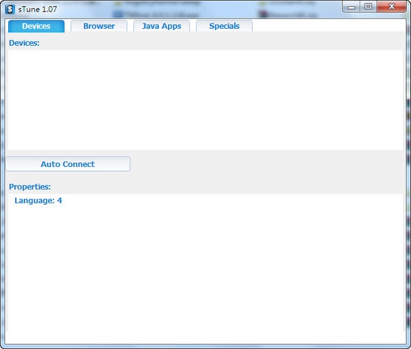 bada系統(tǒng)文件讀取工具(sTune) 1.07 綠色版 bada系統(tǒng)文件讀取工具,支持S5750e,S8500等三星吧嗒系統(tǒng)手機(jī)。使用時(shí)選擇kies或USB調(diào)制模式連接手機(jī),可瀏覽,復(fù)制,刪除(慎用)手機(jī)系統(tǒng)文件與非系統(tǒng)文件。