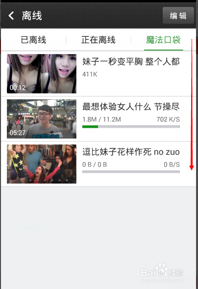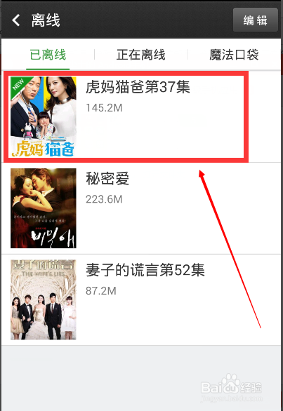 下載完成后,我們在首頁的右上角點離線圖標,就可以看到下載的影片了。