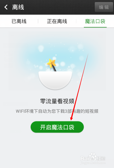 開啟方法:在離線圖標的下級目錄中有個“魔法口袋”。點開!點開后接著點“開啟魔法口袋”。