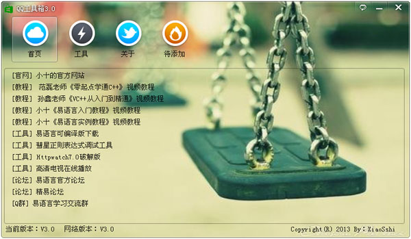 小十QQ工具箱 3.0 免費(fèi)版 小十QQ工具箱是網(wǎng)友原創(chuàng)的一款QQ多功能軟件,小十QQ工具箱界面簡潔,操作簡單,目前功能還不是很多,后期將加入更多功能,敬請期待。