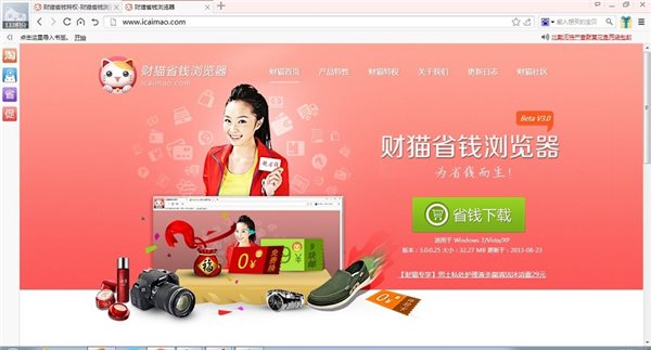 財貓瀏覽器是一個會省錢的網(wǎng)購瀏覽器,使用財貓從淘寶、當(dāng)當(dāng)、京東、美團等300家大型電子商務(wù)網(wǎng)站購物可以給您提供高達5%-45%的高額現(xiàn)金返利。