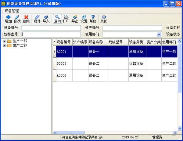 創(chuàng)奇設備管理系統(tǒng)能提升企業(yè)設備管理水平,同時該系統(tǒng)也可作為資料信息電子化管理的工具。 只是一款企業(yè)管理必不可少的一款軟件。非常的實用??靵碓囋嚢伞?br />系統(tǒng)初始用戶
