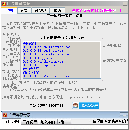 更新數(shù)據(jù)后必須保存設(shè)置,否則屏蔽廣告無效.