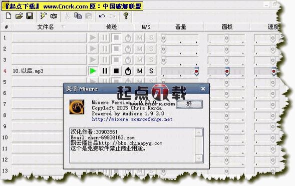 Mixere(音頻編輯) V1.0.83 綠色漢化版 可以混合WAV, AIFF, MP3, Ogg Vorbis, Flac和MOD音頻文件。