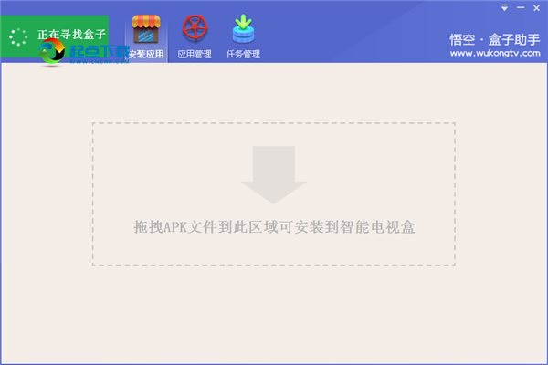 a.選擇好你要安裝軟件的盒子后,下面就是最關(guān)鍵的一步,也是最為簡(jiǎn)單的操作。你可以直接從電腦桌面上將需要安裝的apk直接拖拽到悟空·盒子助手的安裝區(qū)域。