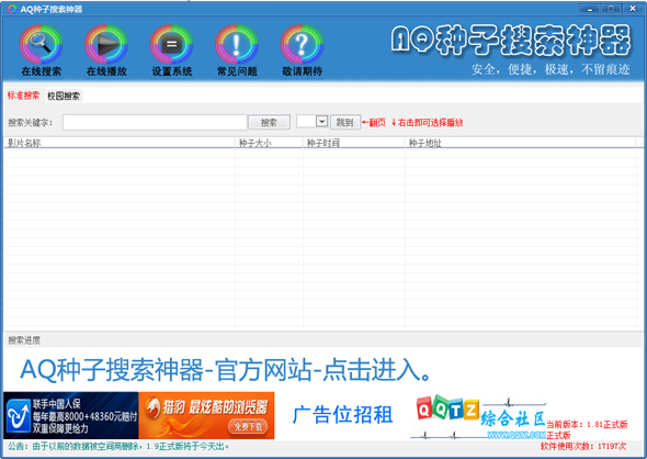 AQ種子搜索神器是一個免費,安全,雙搜索引擎,帶播放器的神器,可以滿足你看片的需求。