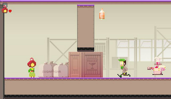 超級檸檬水工廠是一款單人合作的動作冒險游戲。游戲背景故事是發(fā)生在二戰(zhàn)時期,在超級檸檬水工廠這個游戲中,玩家需要同時操控兩個人物,利用他們各自特殊的能力來完成任務。游戲采用了復古的畫風,男女主角的合作是游戲最重要的元素,他們兩人會被分散在關卡中不同的地點,并且擁有不同的技能,男主角可以沖刺撞破一些障礙物,女主角則可以空中二段跳以及和敵人對話。