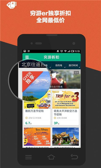 窮游折扣里面每天都有許多折扣信息,很實(shí)用,適合像小編我這樣的窮屌絲口味,就是時(shí)間和金錢不夠用??!硬傷啊。。。【軟件特點(diǎn)】