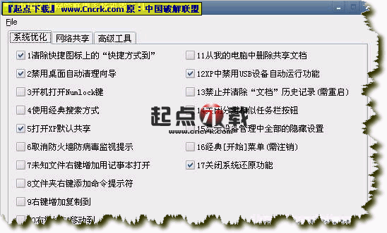 另個還帶有幾十項系統(tǒng)優(yōu)化及限制功能,適合網(wǎng)吧即網(wǎng)管系統(tǒng)優(yōu)化!