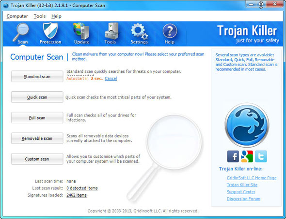 Gridinsoft Trojan Killer木馬克星是專門來禁用/刪除沒有用戶不必手動編輯系統(tǒng)文件或注冊表的惡意軟件。該方案還刪除一些惡意軟件進行了一些標準的防病毒掃描器忽略額外的系統(tǒng)修改。【軟件特點】