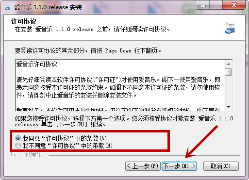 3、閱讀完軟件的“許可協(xié)議”之后,選擇“我同意”,然后點(diǎn)擊下一步。