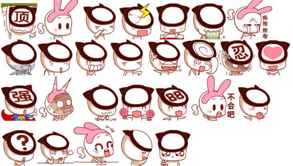 忍 花癡 強 害怕 害羞 88 做鬼臉 疑問 嘆氣 頂 汗 挖鼻孔 雷擊 睡覺 吐 抱抱 石化 汗 奸笑 鄙視 抓狂 暈
