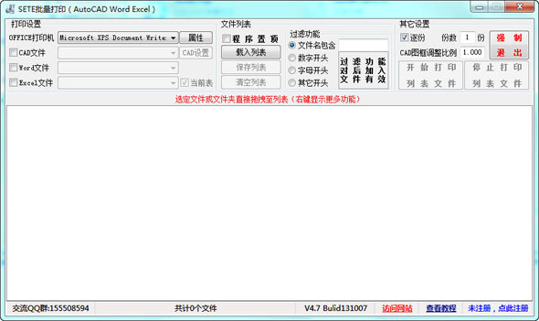 SETE批量打印軟件是一款可以幫助您快速打印AutoCAD Dwg、Office Word、Office Excel文件的工具。這些文件多個(gè)版本都能使用這款軟件進(jìn)行批量打印,兼容性好,是你批量打印的首選!