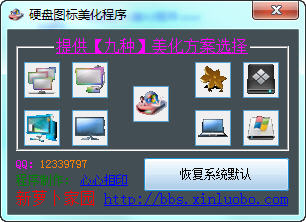 新蘿卜家園硬盤圖標(biāo)美化程序是一款功能非常強(qiáng)大的圖標(biāo)工具,新蘿卜家園硬盤圖標(biāo)美化程序提供了九種美化方案選擇。只需一鍵就可以將硬盤圖標(biāo)編程美女,喜歡個(gè)性的、想與眾不同、那么硬盤圖標(biāo)也不例外,都要盡顯自我的特別。