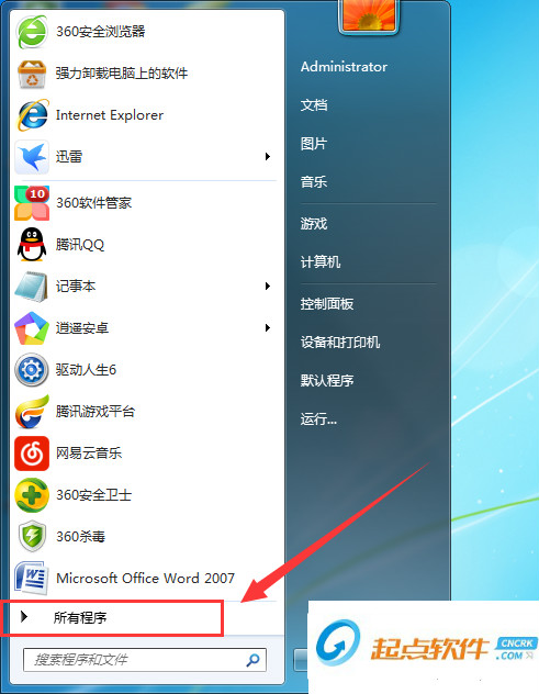 1、點(diǎn)擊電腦左下角的“開始”,然后在彈出的列表中點(diǎn)擊“所有程序”;