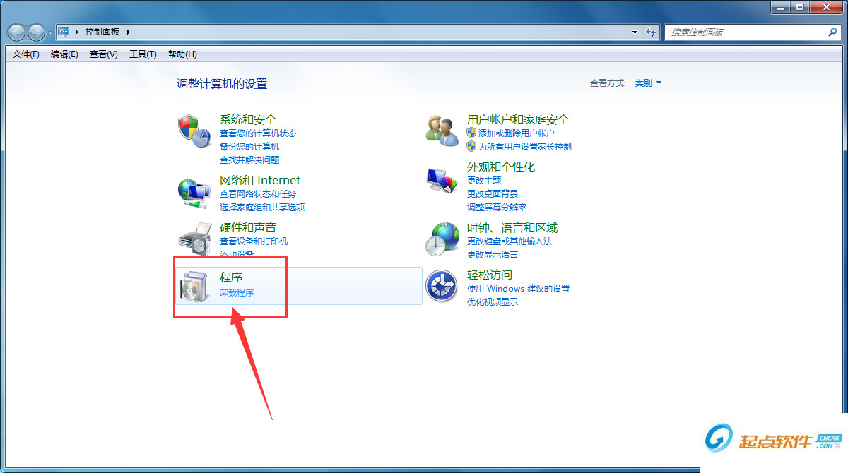2、在控制面板中打開“卸載程序”功能;