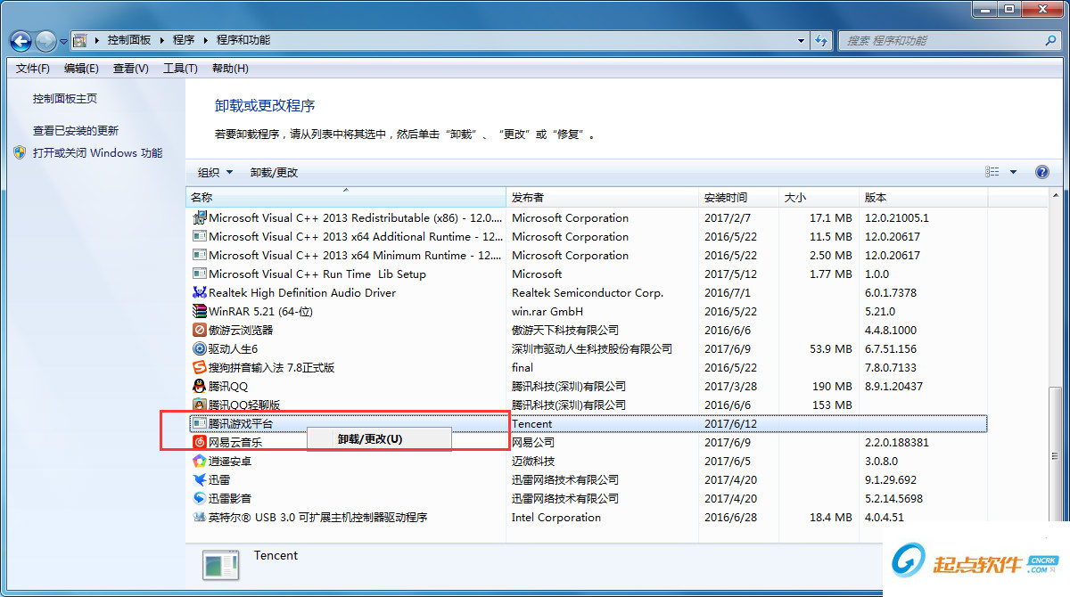 3、接著在卸載程序界面找到騰訊游戲平臺并用鼠標(biāo)右鍵點(diǎn)擊它,之后在彈出的選項(xiàng)中點(diǎn)擊卸載就可以了。