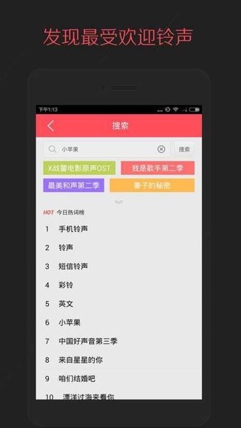 【百萬鈴聲庫】 海量免費高品質(zhì)鈴聲,讓你告別垃圾鈴聲,精彩都在這里!【一鍵設置鈴聲】支持手機中來電、通知、鬧鐘鈴聲一鍵設置,設置鈴聲就是這么簡單。