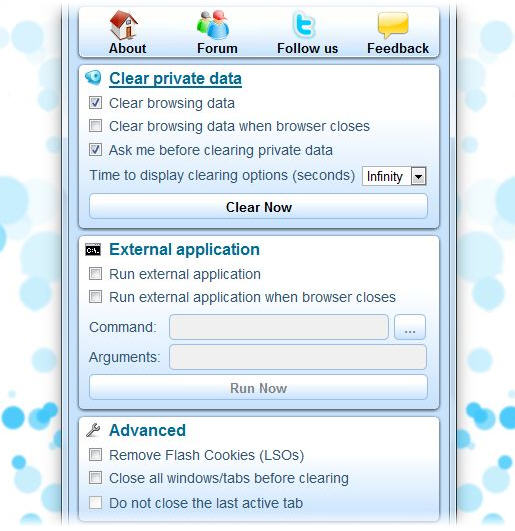 可實(shí)現(xiàn)一鍵全面清理訪問歷史和隱私數(shù)據(jù),可以搭配CCleaner一起使用,如果你正在用火狐上網(wǎng)而且也用CCleaner,那么這個(gè)工具也是必備的。