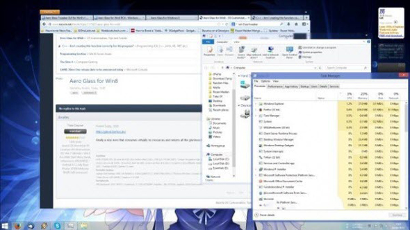 在上層的窗口都會(huì)有一種模糊化的透視感,目的是讓用戶能一眼看穿多個(gè)開啟了的窗口,不過所帶來的缺點(diǎn)就是增加了畫面的元素,讓使用體驗(yàn)變得復(fù)雜了一點(diǎn)。而在 Windows 8 中,微軟開始走簡(jiǎn)約主義的路線,將他們認(rèn)為不必要的元素都除去,而 Aero Glass 就是其中一個(gè),原因是希望畫面「輕」而「優(yōu)美」,減少分散用戶注意的東西。
