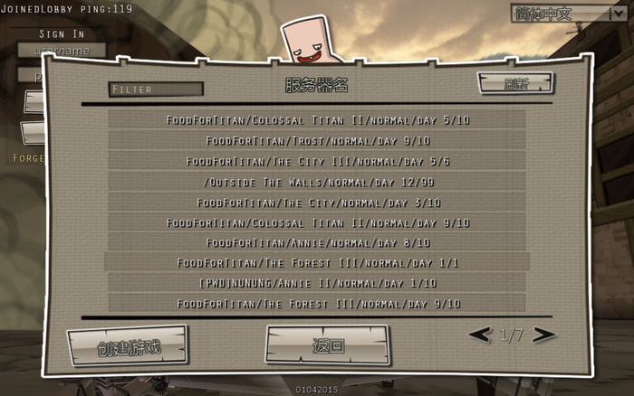 2.進(jìn)入后會出現(xiàn)一堆服務(wù)器,右上角可以輸入服務(wù)器名稱搜索,點擊服務(wù)器就可以加入,點擊創(chuàng)建游戲可以自己創(chuàng)建服務(wù)器
