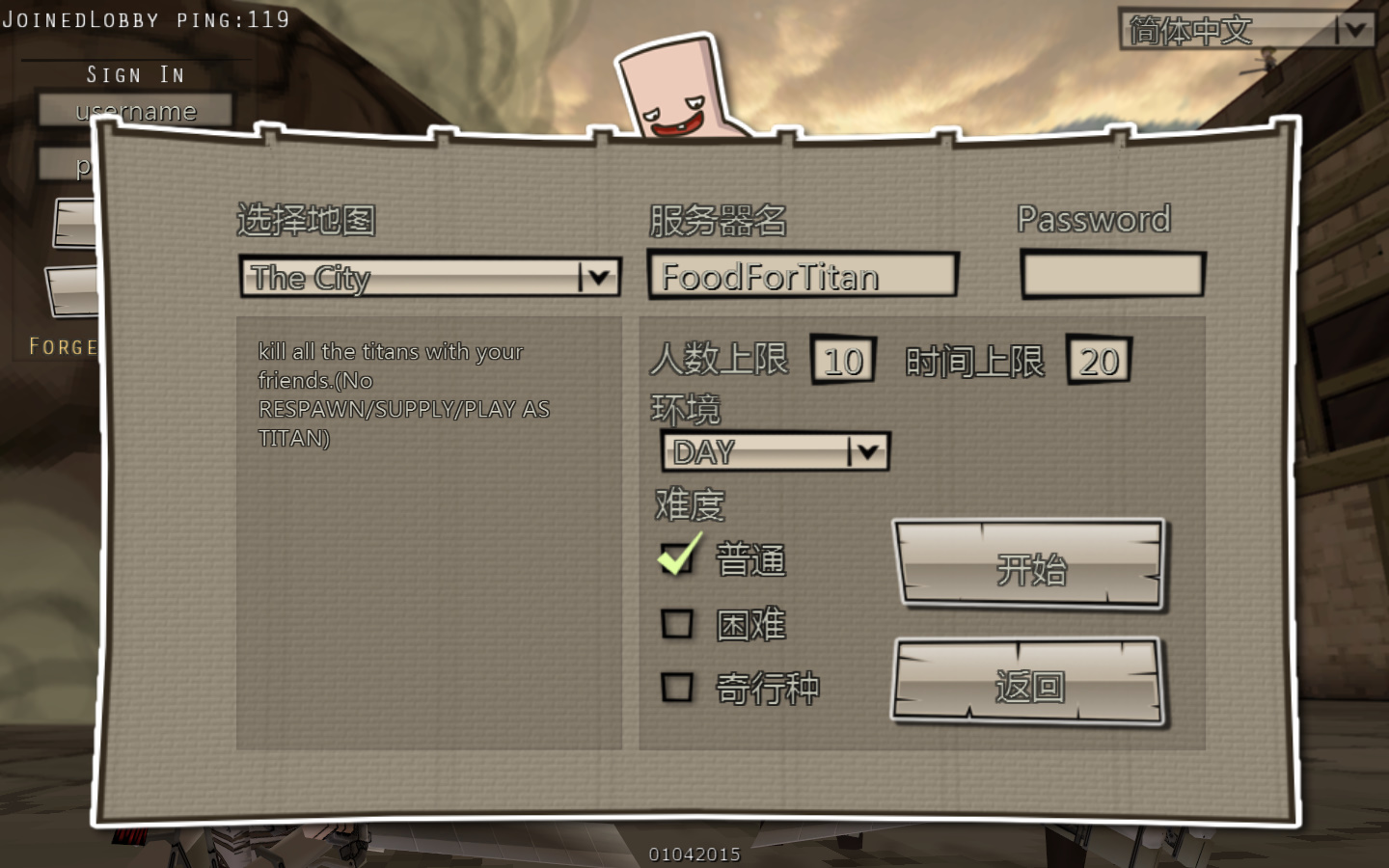 點擊創(chuàng)建游戲后可以選擇地圖,改變服務(wù)器的名稱密碼,定義環(huán)境難度等,點擊開始即可,小伙伴搜索服務(wù)器名稱就可以加入