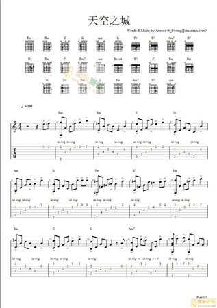 天空之城吉他譜 ,為了方便大家用gtp制作成了高清圖片格式,非常的清晰,喜歡的朋友可以下載去練習(xí),譜子不是很難哦!