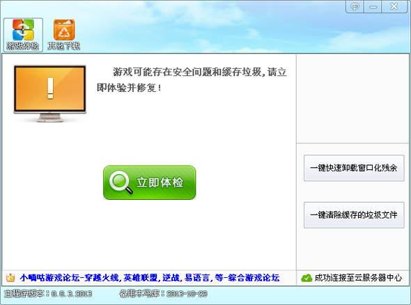 軟件的界面類似現(xiàn)在的各種安全衛(wèi)士,開啟后,點(diǎn)擊立即體驗(yàn)按鈕,即可修復(fù)當(dāng)前游戲出現(xiàn)的安全問(wèn)題和緩存垃圾