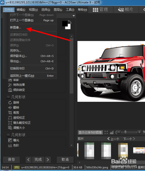 之后先打開一張圖片,進入編輯界面,下面我們關閉圖片編輯界面,會在首先打開ACDSee,進入到主界面,可以點擊桌面圖標或菜單快捷方式,打開ACDSee主界面,這張圖片就會加載在主界面,選中狀態(tài)