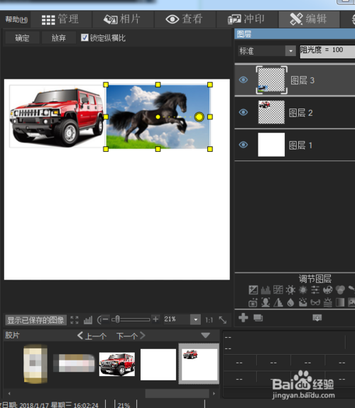 在“編輯”界面下,按ctrl+c,把第一張圖片先復制到剪切板上。