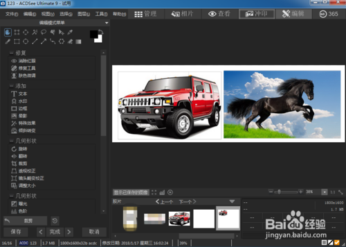 acdsee怎么合并圖片首先在軟件中打開要合并的第一張圖片,然后點擊右上角的“編輯”。