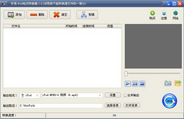 5. 支持截取、分割轉(zhuǎn)換輸出視頻和音頻文件;同時支持不同格式文件合并輸出統(tǒng)一格式
