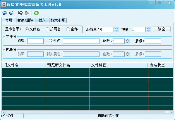 2.支持批量插入文字、插入序號、替換字符、文件名轉(zhuǎn)大小寫等,插入位置可隨意控制