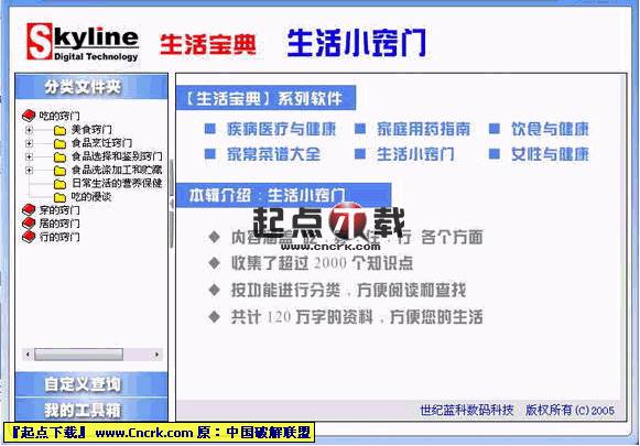 ■ 生活寶典系列軟件是世紀(jì)藍(lán)科推出的一套面向家庭用戶的工具類系列軟件,根據(jù)內(nèi)容不同共分為六套軟件。提供了日常生活中各個(gè)方面的知識(shí)大全,美觀的界面,簡(jiǎn)便的操作,使您在高速發(fā)展的信息時(shí)代可以更快捷的獲得對(duì)自身及家庭有幫助和有價(jià)值的信息。