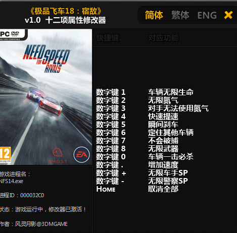 極品飛車18修改器是一款同名游戲的輔助修改工具,共添加十二項修改選項,功能十分齊全,幫助玩家體驗更加極速的賽車樂趣。