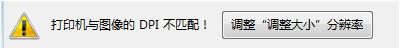 界面上的感嘆號(hào)提示打印機(jī)與圖像的DPI不匹配。出現(xiàn)這種情況,可以點(diǎn)擊調(diào)整“調(diào)整大小”分辨率。