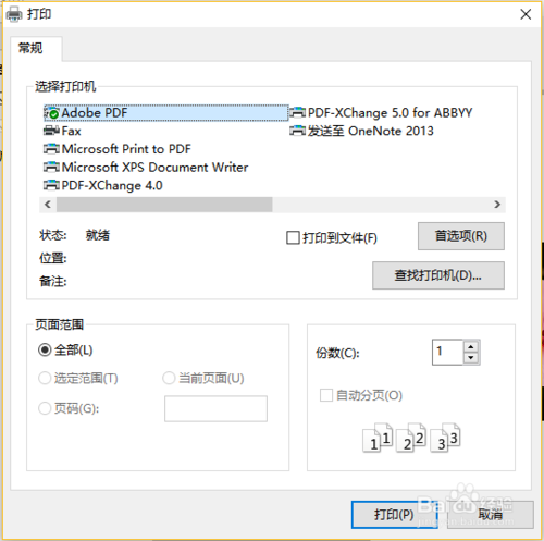 通過(guò)打印機(jī)設(shè)置,可以選擇打印機(jī),打印張數(shù),如果要設(shè)置彩色打印,可以點(diǎn)擊首選項(xiàng),從里面選擇彩色。