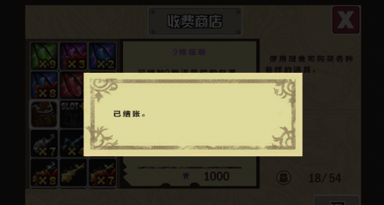 最好采用離線游戲,聯(lián)網(wǎng)購買會彈出對話框,這時你得按取消(第二個選項),離線則直接內(nèi)購成功;收費商店-如包裹、傭兵槽、強(qiáng)化寶石、復(fù)活書等都是直接購買;