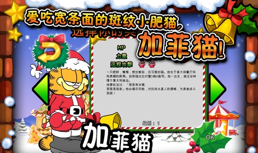 糟了…我們不在蒙夕巿了!快加入這只懶肥貓及同伴們的偉大戰(zhàn)役,對(duì)抗那些會(huì)偷竊食物、企圖毀掉節(jié)慶的外星人。有了你的幫助,加菲貓會(huì)試著拯救圣誕老人和他的小精靈、讓地球免于外星人的入侵,并且確保我們都能盡情享受歡樂的節(jié)慶。這款令人垂涎的游戲會(huì)帶你來到寒冷的北極,外星人正在這里計(jì)劃把地球上所有的食物都變成入侵軍隊(duì)!你可以透過直接來自加菲貓?jiān)媛嫷牟噬ㄍ▓D像,體驗(yàn)動(dòng)作、塔防及戰(zhàn)略游戲最精彩的元素!正當(dāng)?shù)厍蛉嗣χ庸?jié)慶季的到來,外星食物入侵者準(zhǔn)備在北極展開全面攻擊,將所有食物變成入侵機(jī)器軍團(tuán),甚至圣誕老人和他的小精靈們也陷入危機(jī)?,F(xiàn)在圣誕節(jié)的命運(yùn)全系于一線之間!一切就看加菲貓和同伴們?nèi)绾卧僖淮巫柚雇庑侨巳肭?,畢竟加菲貓絕不能忍受沒有千層面的圣誕大餐!