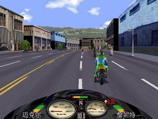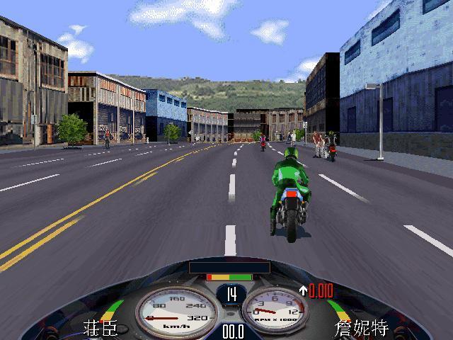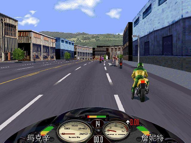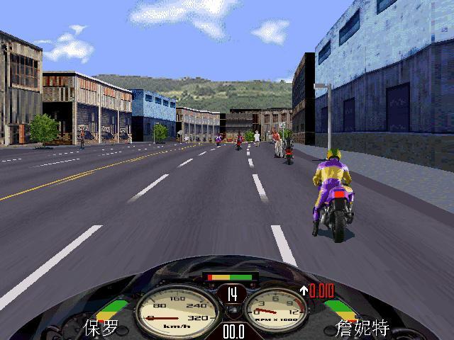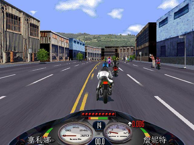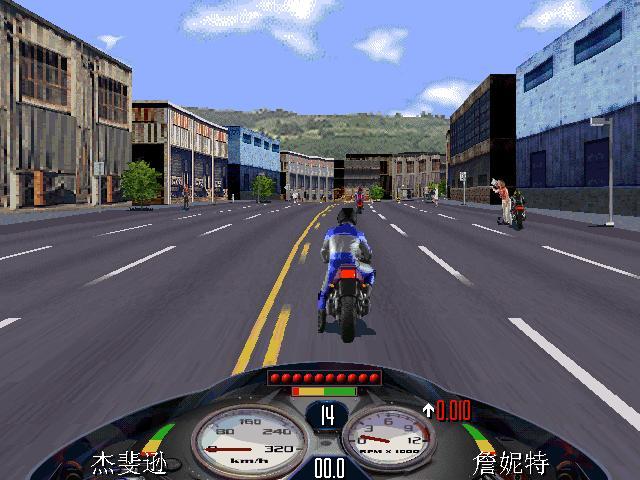 3、比賽進(jìn)行期間,按 V 鍵可查看游戲版本;按 F10 為切換/顯示/隱藏摩托車(chē)的儀表面板;小鍵盤(pán)的 + - 鍵為改變游戲背景的貼圖顏色。