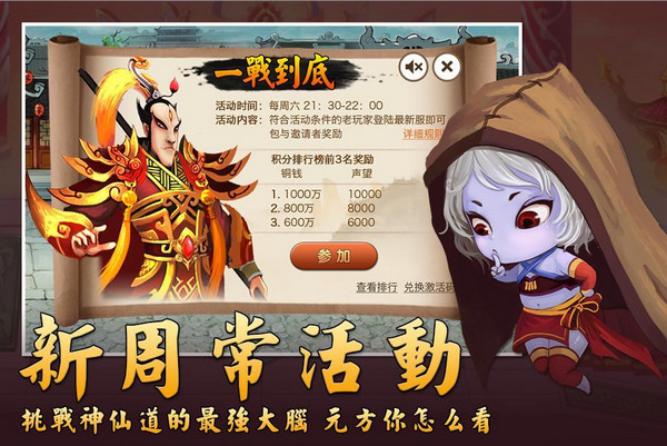 【為資源而戰(zhàn)】擊殺boss,人人有獎!你和你的小伙伴都準備好了嗎?仙友們,趕緊沖!【為榮譽而戰(zhàn)】問世間,是否此山最高?世界boss傷害排名告訴你誰才是為全服而戰(zhàn)的大英雄。想成為萬眾矚目的全服偶像嗎?展示出你最強的實力吧!