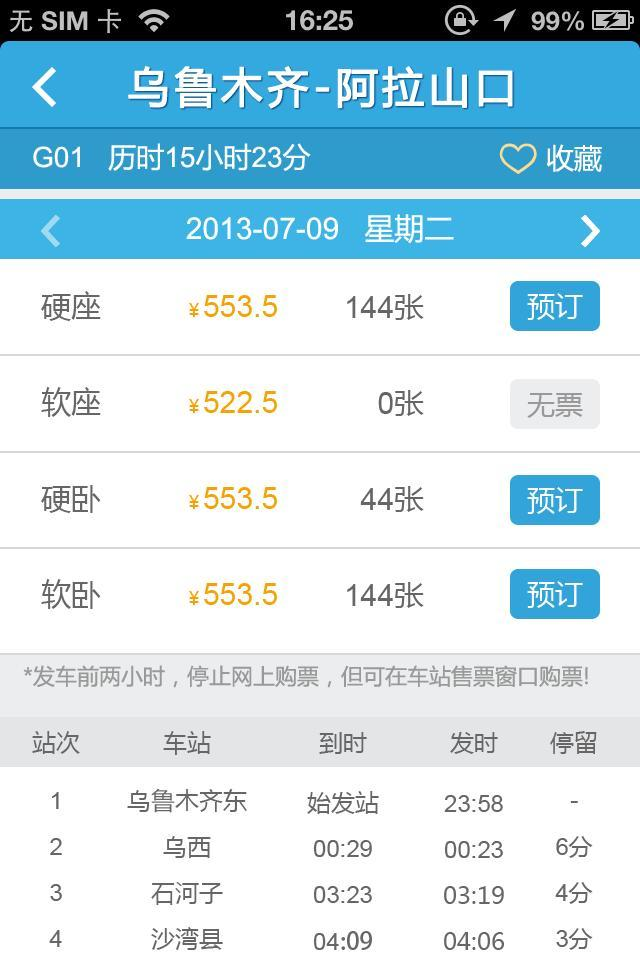 4、時刻查詢:全國列車時刻表、列車類型、坐席票價,一應(yīng)俱全。