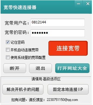 寬帶快速連接器是一款可以非常快速的連接寬帶,可以實(shí)現(xiàn)開機(jī)自動連接寬帶,寬帶連接成功后自動退出,不打擾用戶,可以自動修復(fù)寬帶連接相關(guān)的問題,尤其是很多寬帶用戶頭疼的開機(jī)后立即點(diǎn)擊寬帶連接會卡住系統(tǒng)1-2分鐘的問題,提供了完美的解決方案。